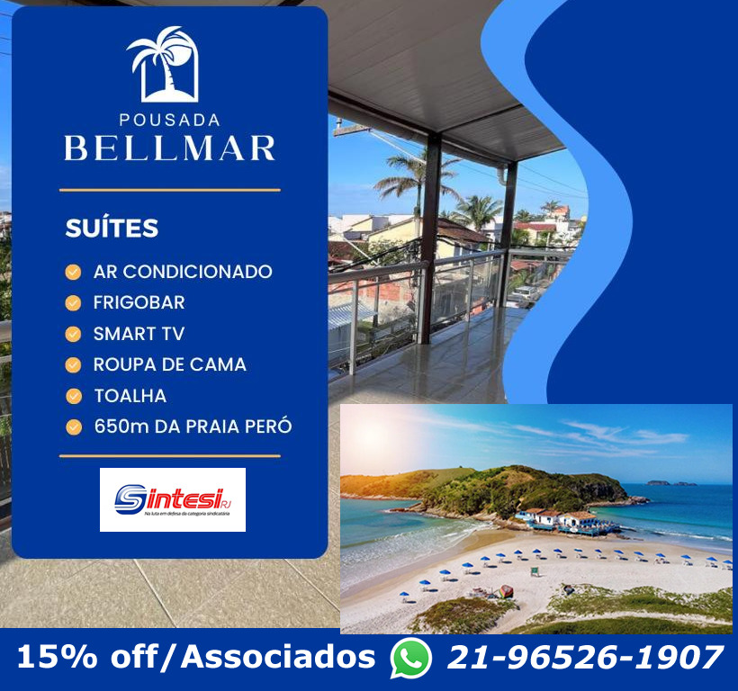 15% de desconto para associados. Excelente localização; Quartos equipados com camas de casal e solteiro; Instalações modernas; Serviços personalizados. |Fale com o SINTESI-RJ : 21 96526-1907.